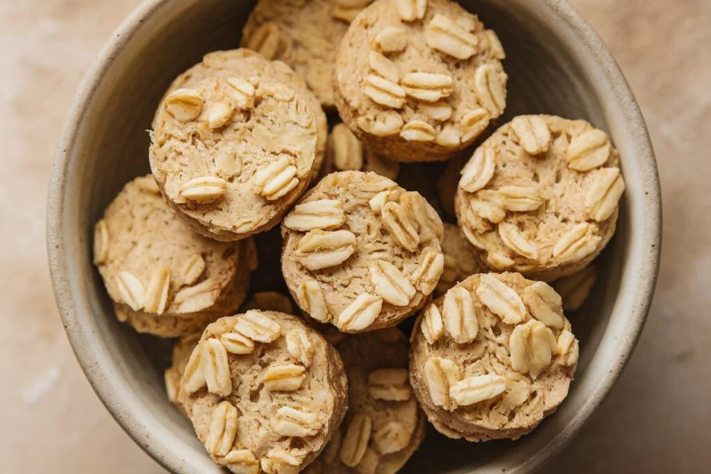 These banana and oat dog treats are naturally sweet, packed with fiber, and made with simple, wholesome ingredients. Ripe bananas provide gentle sweetness without added sugar, while oats offer a gluten-free source of digestion-friendly fiber. If you’re looking for a quick, allergy-friendly treat for sensitive pups, these bites are an easy, healthy option.
